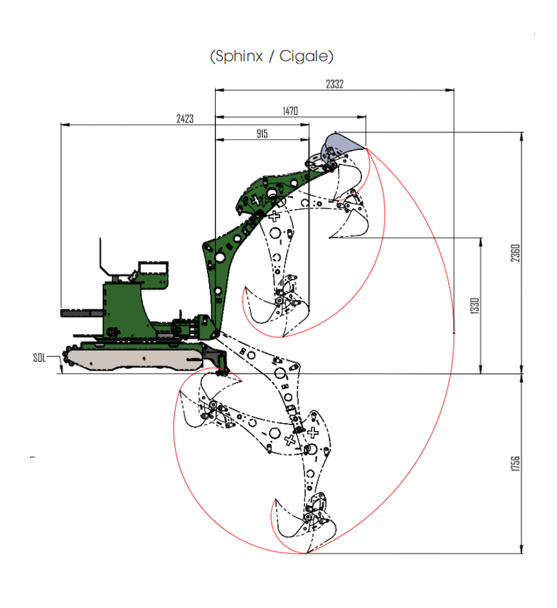 - Max. hloubka výkopu (s rychloupínákem a bez teleskopického ramene) : 1800 mm
