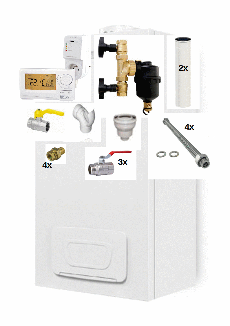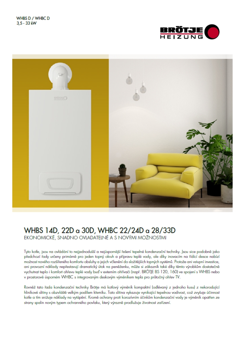 1x Kotel WHBS 22 D; nástěnný kondenzační kotel s průtočným ohřevem teplé vody ve vestavěném deskovém nerezovém výměníku.
